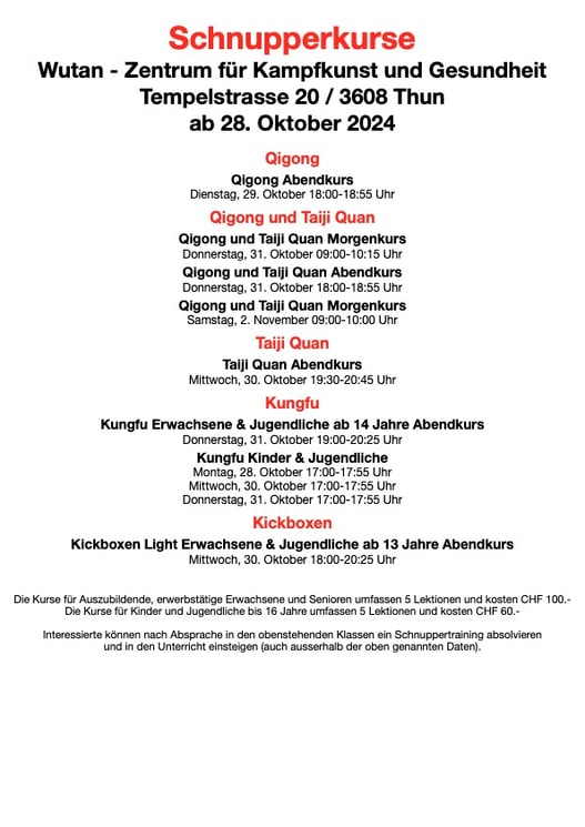 Interessierte können auch im normalen Trainingsbetrieb in den Grundlagen Klassen schnuppern kommen. Sie melden sich über den unterstehenden Link zu einem Schnuppertraining an. Wir kontaktieren euch, um einen Termin zu vereinbaren.